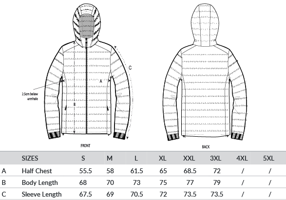 High collar with detachable hood including metal matte hidden snaps. Hood opening and bottom hem with adjustable plastic stopper and elastic cord. Zipped welt pockets with extra grosgrain pull. Fully quilted. 1x1 rib at sleeve hem. Oeko-Tex certified. Vegan certified. Fairwear Foundation certified.